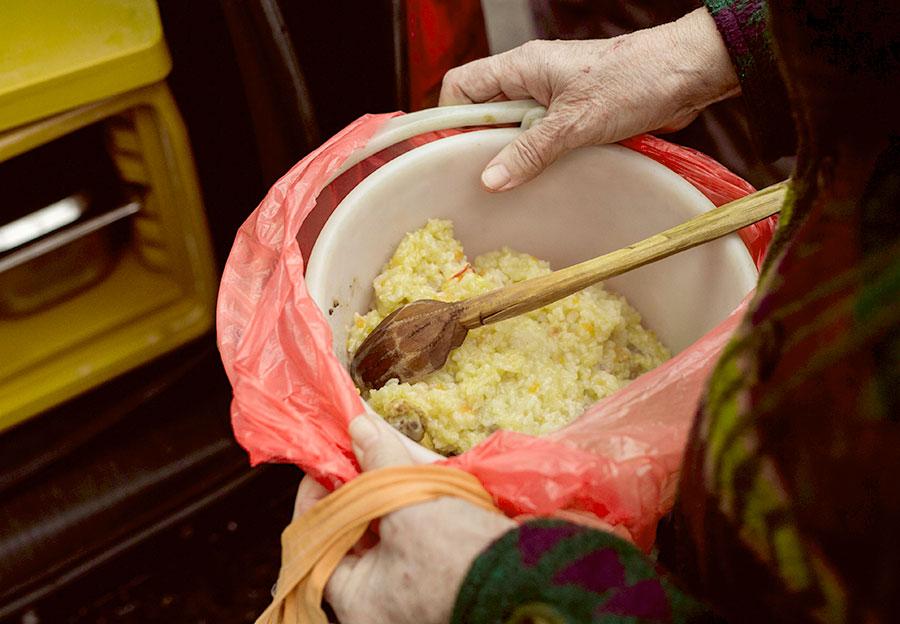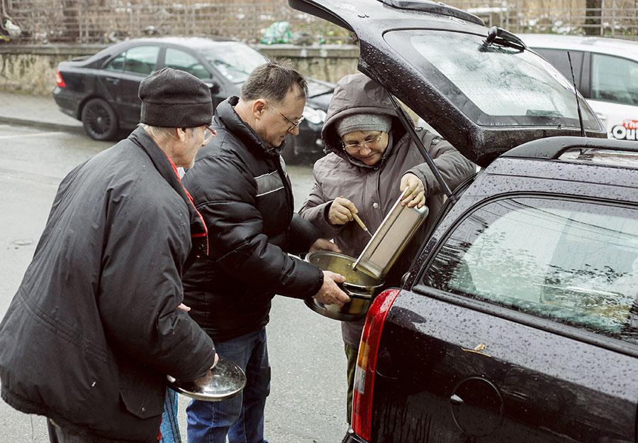 Täglich werden Mahlzeiten bei der Suppenküche abgeholt. Viele Menschen sind sehr arm und staatliche Unterstützung gibt es nur wenig. Für manch einen ist es vermutlich die einzige warme Mahlzeit am Tag.