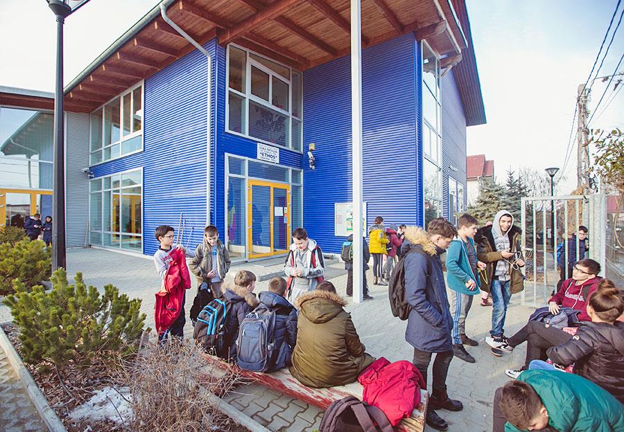 Ein ausgedienter Container der Deutschen Post wurde in Craiova wieder aufgebaut, zweckmässig ausgebaut und eingerichtet. Hier wurden die ersten Klassen der neuen ethos-Schule untergebracht. Am 4.9.2000 wurde der Betrieb von vier Klassen mit rund 80-100 Schülern aufgenommen.